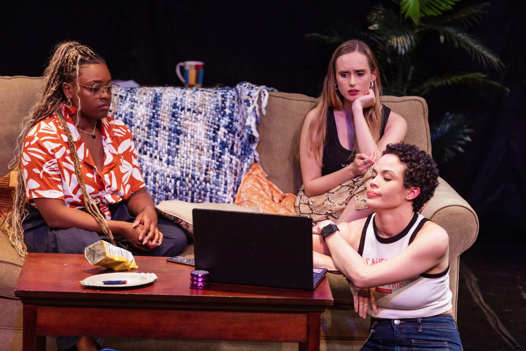 michaella moore as nina, rocket claman as cooper, savina barini as may in the festival presentation of one drop cool june 2023